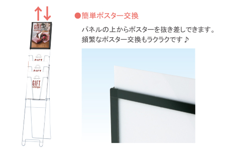A4サイズのチラシが入る、シンプルで扱いやすい製品です。